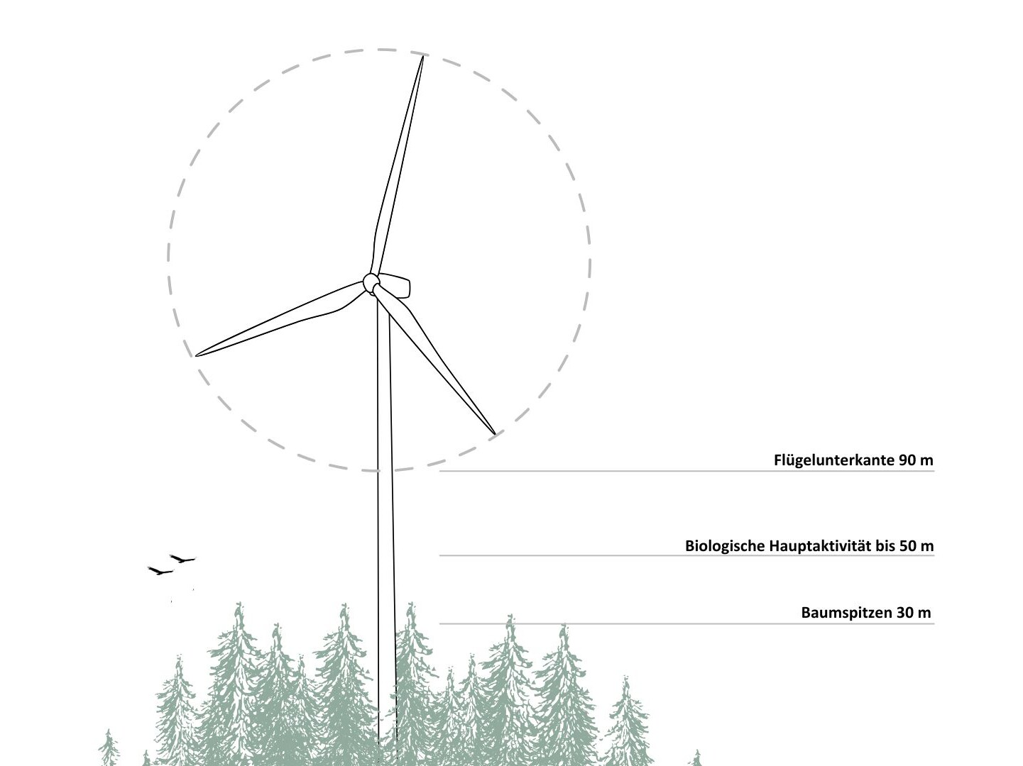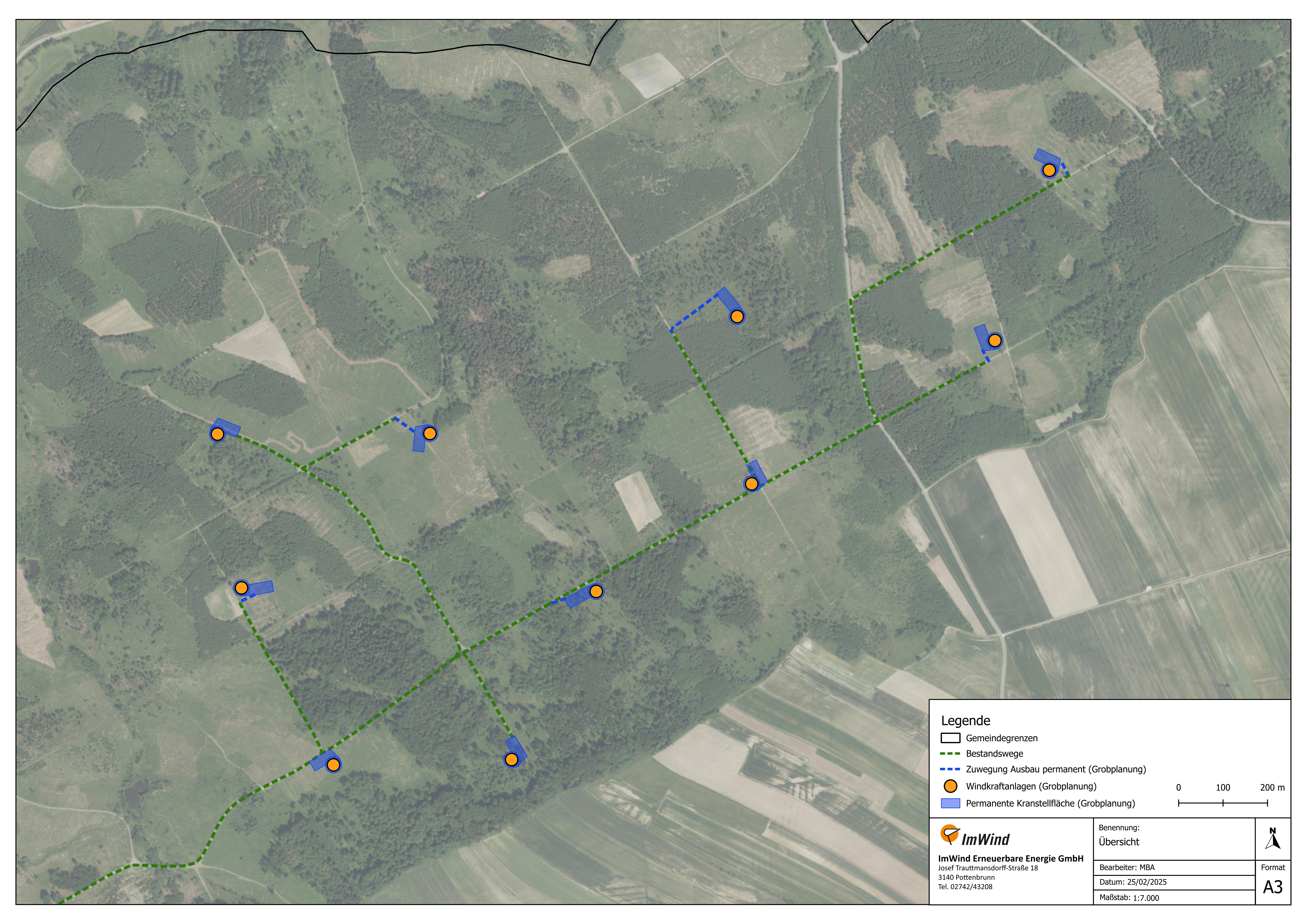 - Der vom Land Niederösterreich gesetzlich vorgeschriebene Mindestabstand von 1.200 Meter zu bewohntem Gebiet zur nächstgelegenen Windkraftanlage wird in allen Fällen eingehalten.