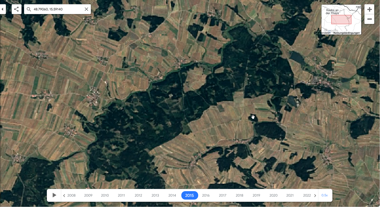 Seit mehr als 200 Jahren ist der Sasswald im Besitz der Familie Hoyos, die den Wald so gut wie kaum ein Anderer kennt. In den letzten Jahren erlebte die Familie hautnah, wie der Wald dem Borkenkäfer und orkanartigen Stürmen zum Opfer fiel. Die immer trockeneren Verhältnisse durch den Klimawandel begünstigen die rasche Ausbreitung des Käfers, der die heimischen Hölzer massiv schädigt. Satellitenaufnahmen im Jahresverlauf zeigen ganz klar das Ausmaß des Kahlschlags. Sie finden dazu hier die Aufnahmen von Google Earth.