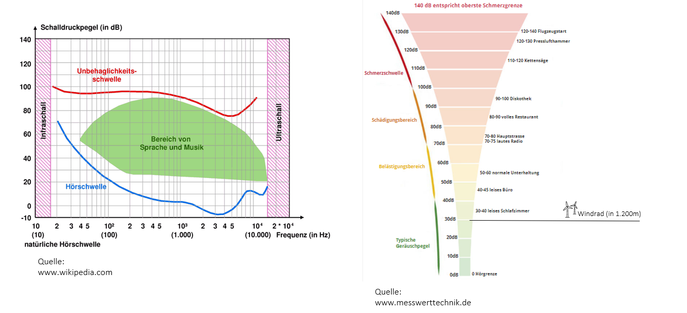 Infraschall ist Schall mit einer Frequenz unterhalb des menschlichen Hörbereichs. Er kommt in der Natur häufig vor, etwa durch Wind oder Meereswellen. Wissenschaftliche Studien zeigen, dass der von Windrädern erzeugte Infraschall in den üblichen Abständen zu Wohngebieten weit unter der Wahrnehmungsschwelle liegt.